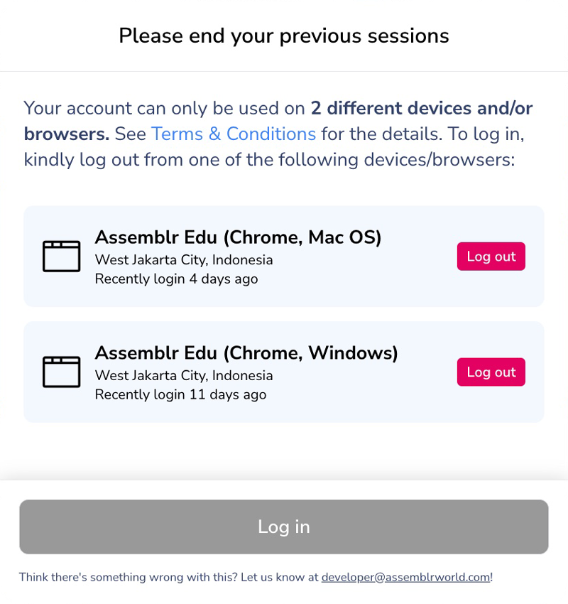 Logging in to web-based Assemblr EDU with a different browser yet in the same device is counted as 1 session.