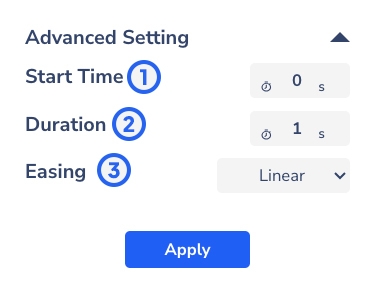 Every interactivity action also comes with the advanced settings. You can set up the start time, duration, and easing of your interactivity; except for the Open URL action.