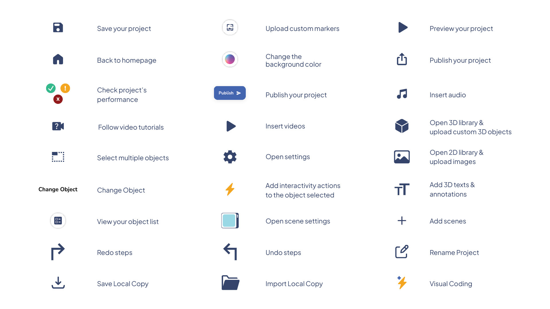Jika kamu sebelumnya pernah berkreasi di aplikasi mobile Assemblr, tools-tools yang ada sebetulnya sama. Namun, ukuran layarnya jadi lebih besar, sehingga akan lebih mudah bagimu untuk membuat proyek AR.